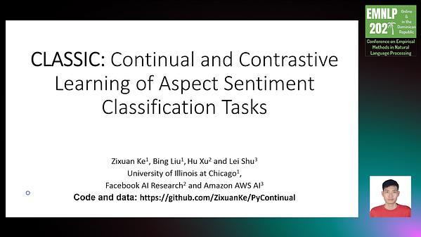 CLASSIC: Continual and Contrastive Learning of Aspect Sentiment Classification Tasks